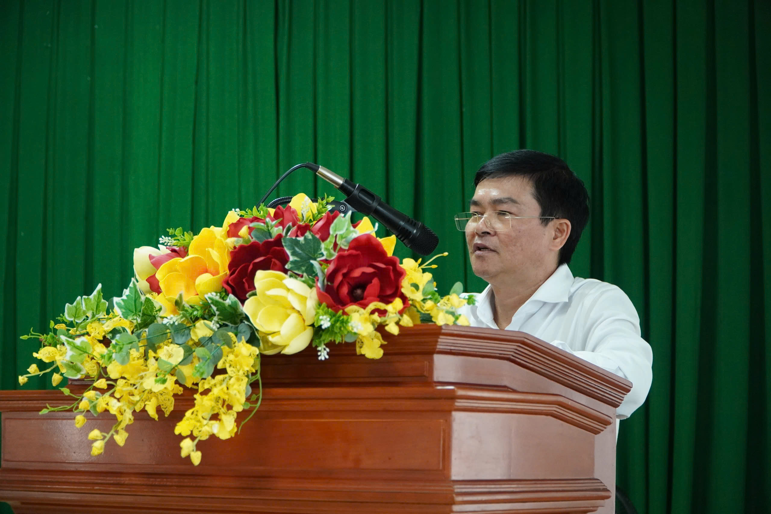 Hình 3 Ông Huỳnh Kim Lâm – Giám đốc Bệnh viện Y học cổ truyền Đồng Tháp phát biểu tại buổi lễ